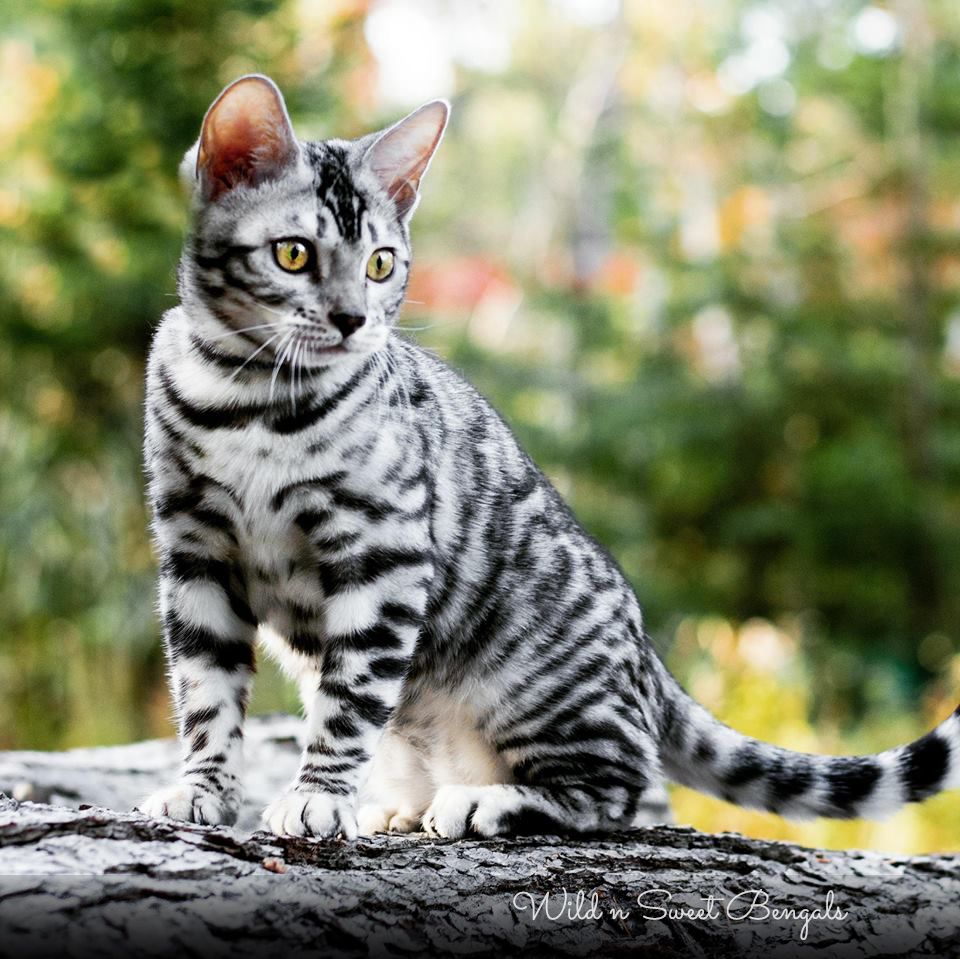 Jasper is the 7th wonder of Wild N Sweet. He is a Bengal cat that has really been spoiled by nature. He has a bright white dress with an amazing rosetted pattern and a breathtaking color. He also has a pretty head with tiny ears and beautiful yellow eyes. This boy produces beautiful Bengal kittens in silver, snow, blue and brown colors. His gentle temperament and confident presence make him a true standout in our breeding program. Jasper passes on his wild beauty and affectionate nature to every kitten he sires.
